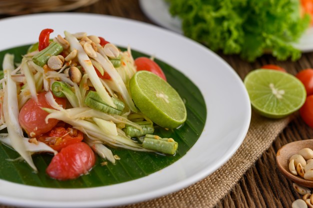 • סלט אסייתי פריך עם רוטב שומשום-סויה.